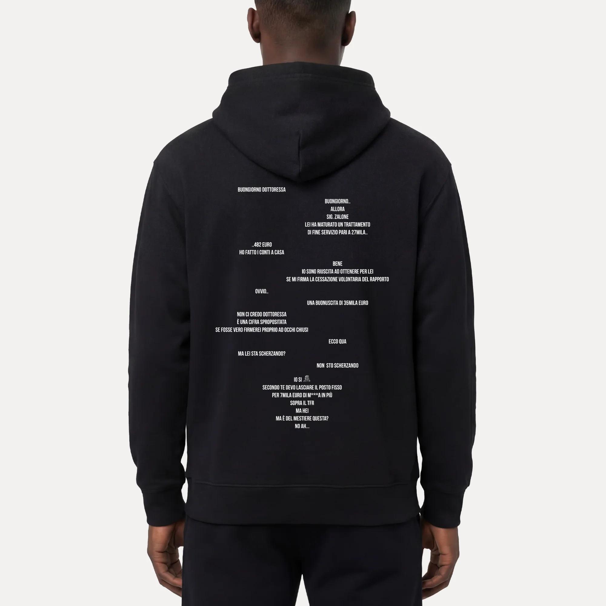 70% cotone, 30% poliestere. Tessuto PST: interno in poliestere ed esterno 100% cotone. Felpa con maniche set-in, unisex, felpata internamente, cappuccio a doppio strato, occhielli in metallo, cordini con punta in metallo, grande tasca a marsupio, struttura con cuciture laterali, fascia in vita e polsini in costina. 280 g/m2. Le misure dei prodotti si intendono a capo steso.